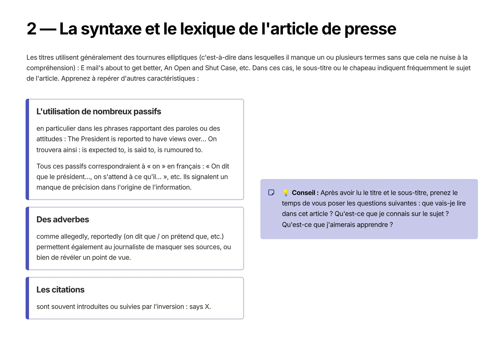 La syntaxe et le lexique de l'article de presse