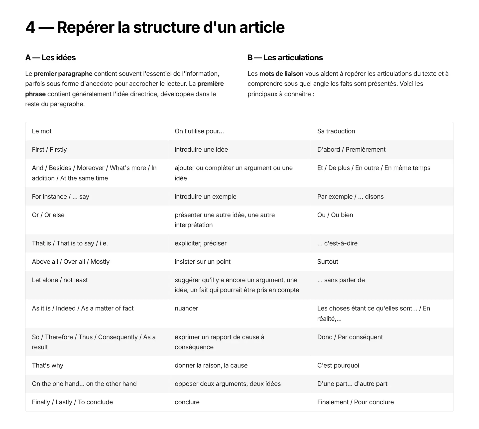 Repérer la structure d'un article